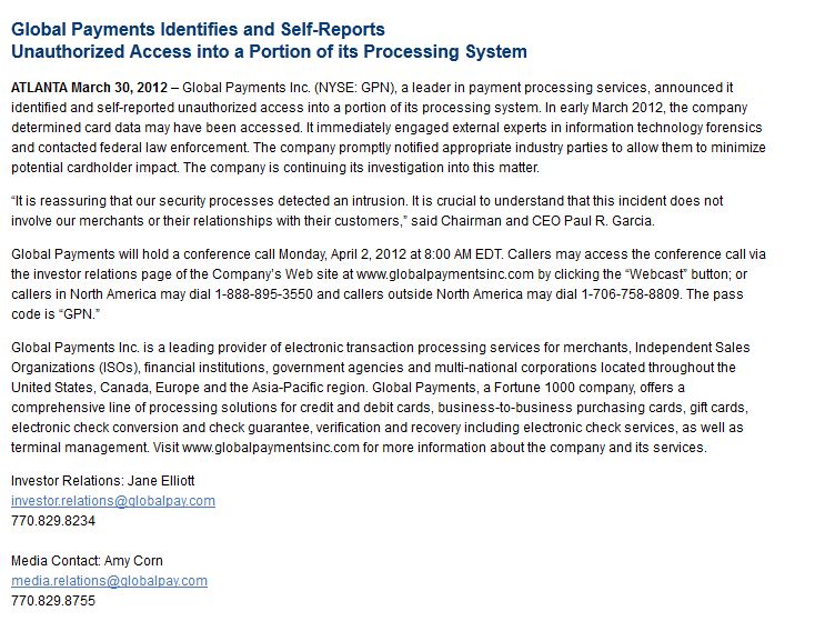 Global Issues Press Release Confirming Breach March 30, 2012