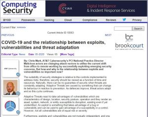 Computing Security magazine recently published an article I wrote on COVID19 and Threats, Vulnerabilities and Exploits.